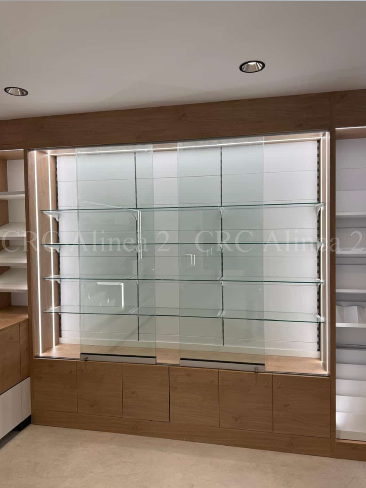 Instalamos una vitrina cerrada con estantes de cristal templado, ideal para exponer productos especiales de forma segura. Incluye cierre con llave e iluminación LED para realzar la presentación.